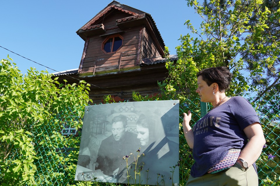 У современной русской деревни есть два основных состояния. Первое: заборов нет, потому что давно завалились и некому поправить, а значит, деревня мертва. И состояние второе: заборы есть, но глухие, из профлиста в два с половиной метра, значит, деревню оккупировали городские-пришлые и та жива фактически, но исторически её путь подошёл к концу — кончилась преемственность поколений. Учма выбивалась из этой стройной концепции. Здесь теплилась жизнь! В Учме зримо присутствовали тени предков. Те приглядывали — как там идут дела у потомков, в 21 веке. Практически с каждого фасада или забора на нас с интересом и добрыми улыбками смотрели бывшие жители этой старинной волжской деревни. Как-то сходу мы придумали название этому масштабному спиритическому сеансу — «Бессмертная деревня», по аналогии с «Бессмертным полком». Вот на фото грузовик с деревенской молодёжью, у всех в руках букеты сирени — едут на какой-то праздник. Бабушка почтальон с медалями на груди, под фото, на стене дома до сих пор висит почтовый ящик. Принаряженные для снимка молодые парни — улыбаются. Вот на лавочке у дома позируют фотографу три поколения женщин...